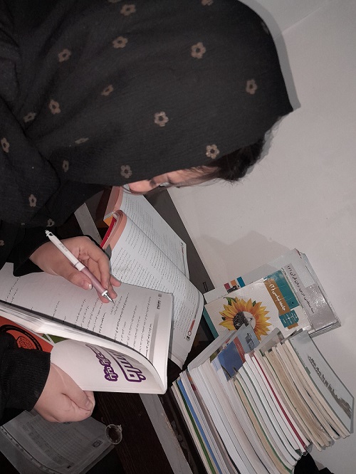 من روزانه بخشی از ساعت مطالعه ام را اختصاص می دهم به امتحانات و پرسش های درسی و هدفم این است که تا عید یک دور تمام کتاب های درسی را مطالعه کرده باشم و خوب خیلی از دروس را جلو تر از تدریس دبیر هستم تا اینکه روز امتحان هم وقت برای تست داشته باشم هم امتحان مدرسه