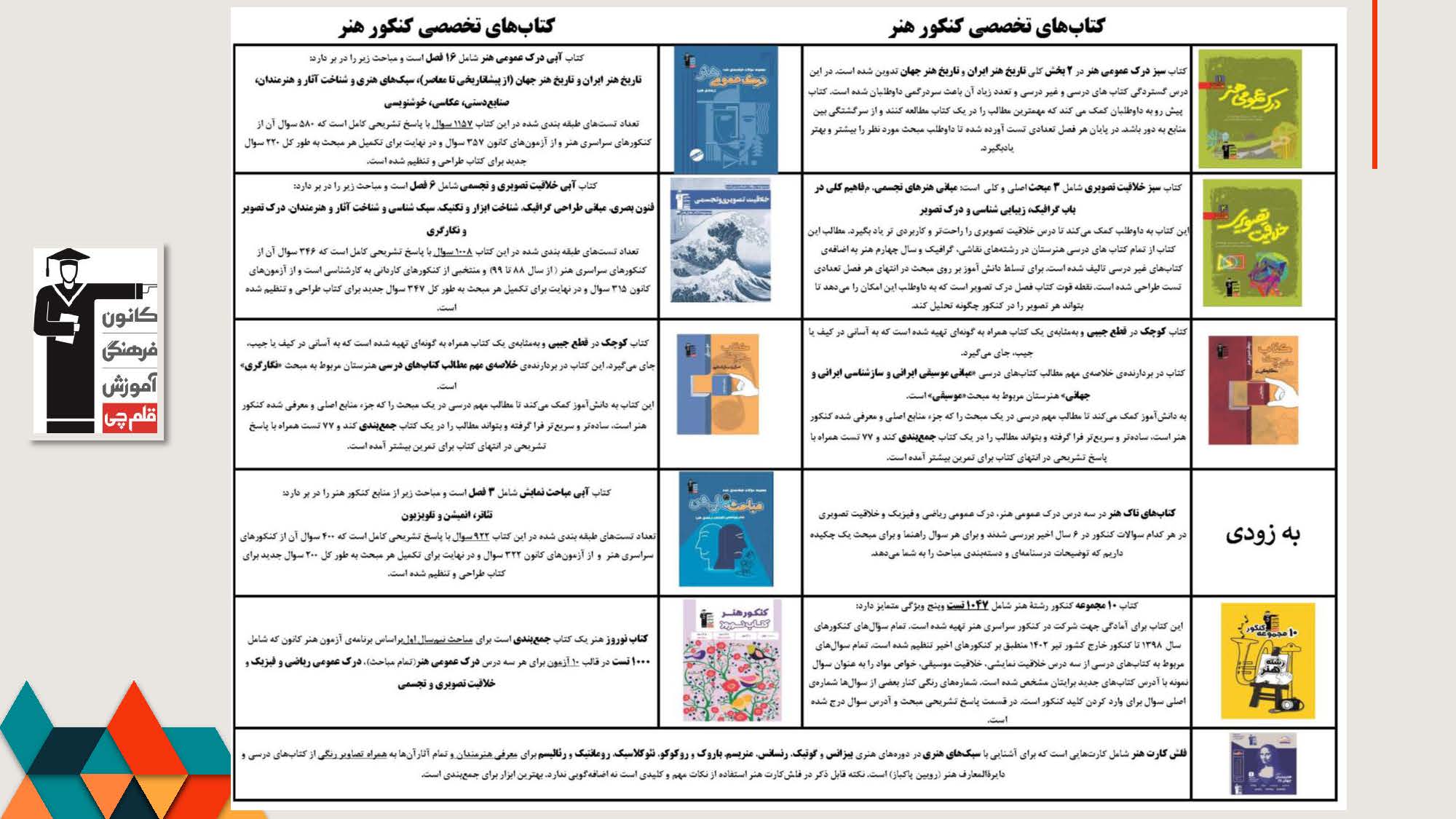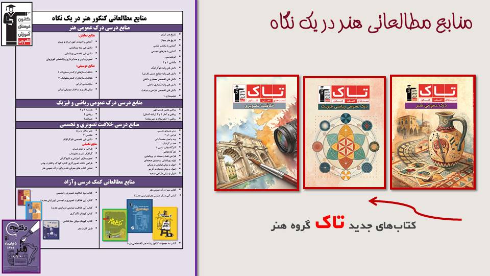 آزمونهای نیم سال دوم هنر از چه مباحث و کتابهای درسی است؟