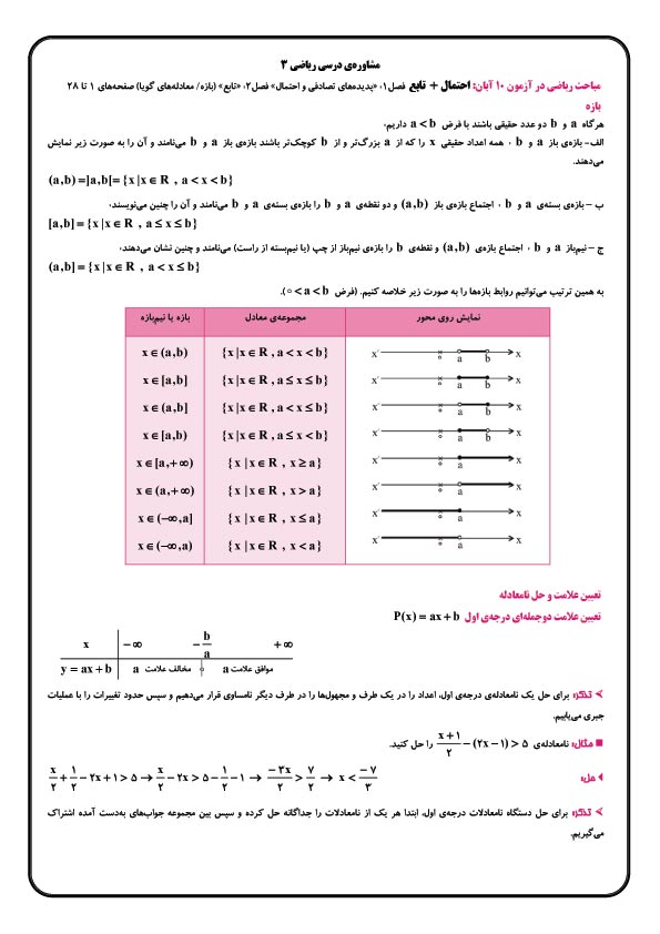 خلاصه درس رياضي آزمون10 آبان