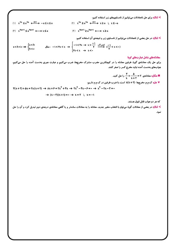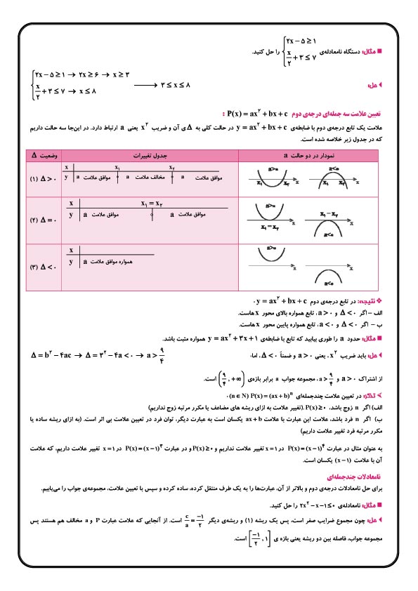 خلاصه مطالب درس ریاضی آزمون 10 آبان سوم تجربی