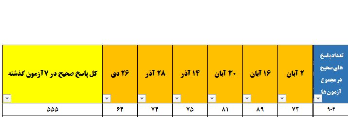 تعداد پاسخ صحیح در مجموع آزمون ها:904عدد
