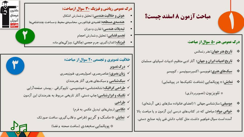 در آزمون 8 اسفند گروه هنر کدام مباحث را باید پاسخ دهیم؟