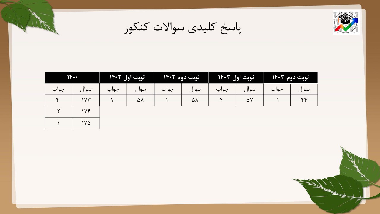 در آخر 7 تست کنکورهای سالهای اخیر را به همراه پاسخ کلیدی برایتان قرار دادیم.