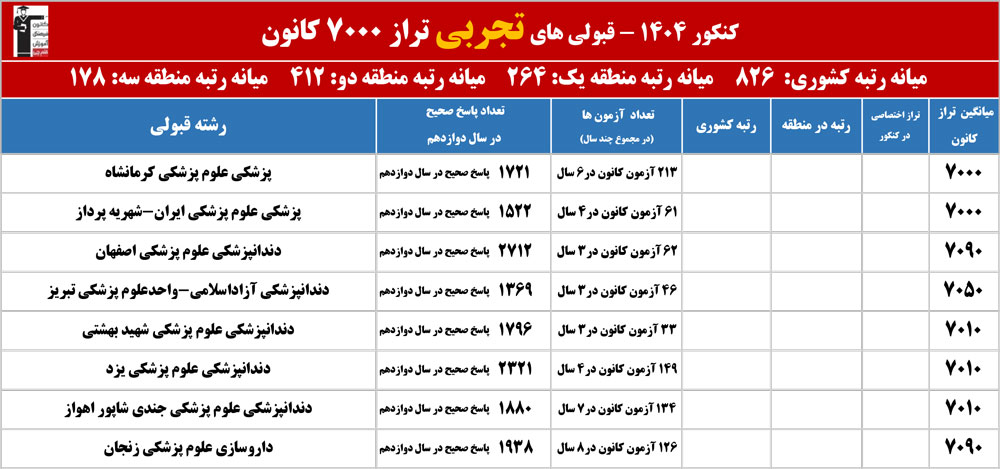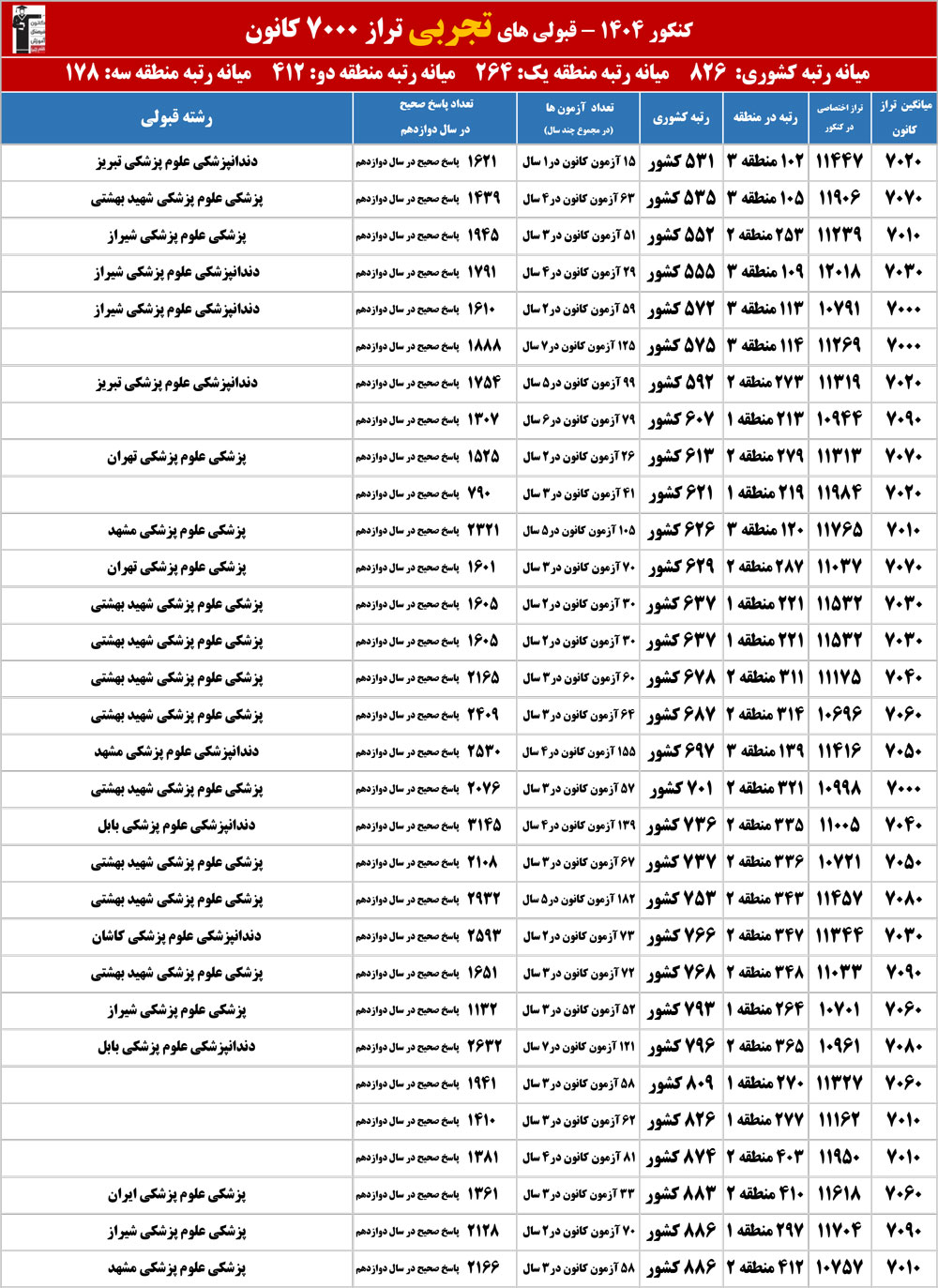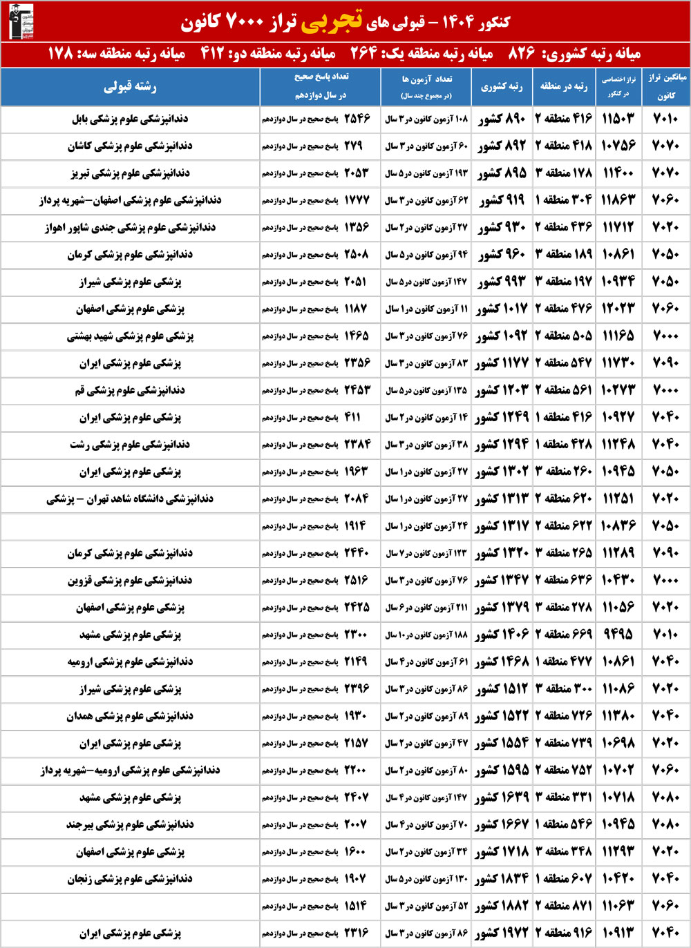 این رتبهها مربوط به دانشآموزان پارسال (1404) است. اگر دانشآموزی مشابه شما در پارسال کنکور داده بود چه نتیجهای میگرفت. نتایج جدول واقعی است اما شما را به خودتان امیدوار میکند.