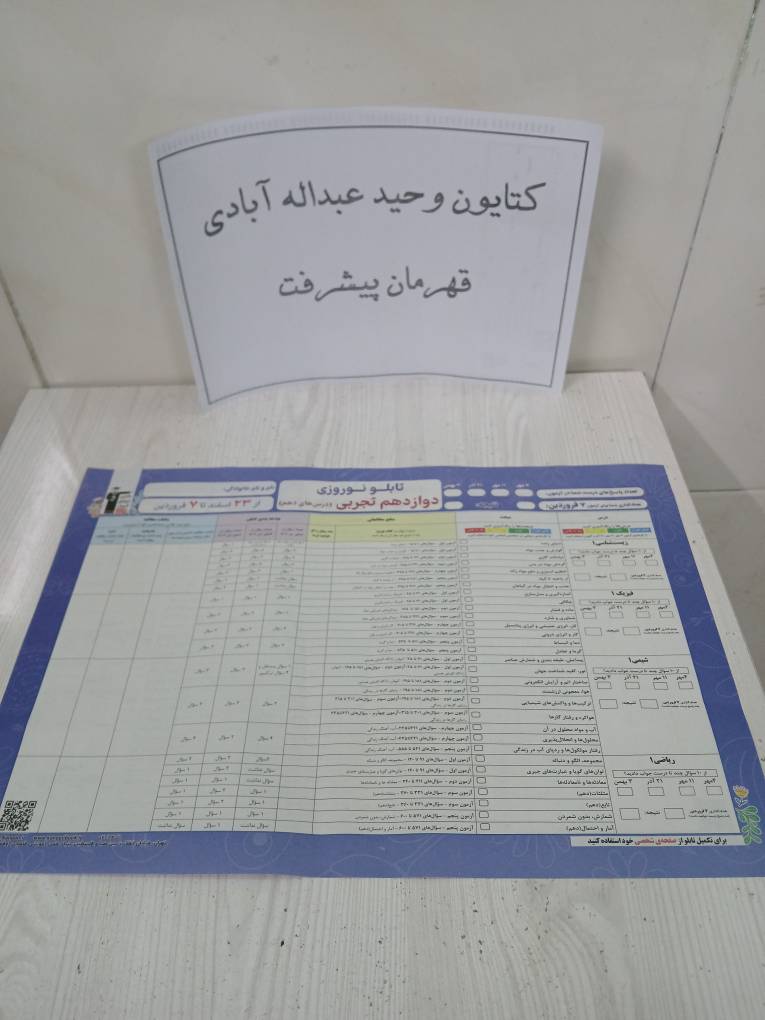 بله، دفتر برنامهریزی دارم و سعی میکنم آن را تا پایان کامل کنم. این دفتر به من کمک میکند حجم درسها، میزان مطالعه روزانه و عقبافتادگیهایم را مشخص کنم و باعث میشود برنامهام منظمتر باشد و بتوانم عملکرد خودم را بهتر ارزیابی کنم.