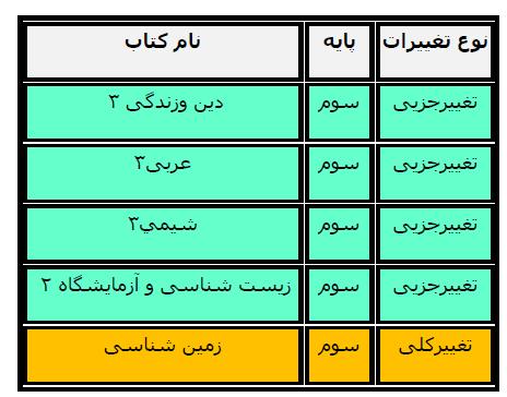 2-براي اطلاع كامل از وضعيت تغييرات كتابهاي درسي سال سوم (چاپ 91 نسبت به 90) به جدول زير توجه بفرماييد:
