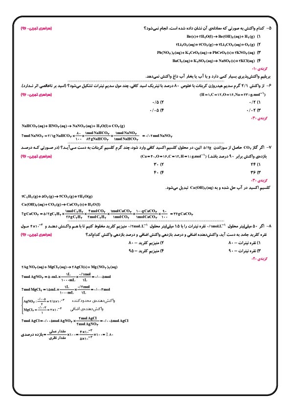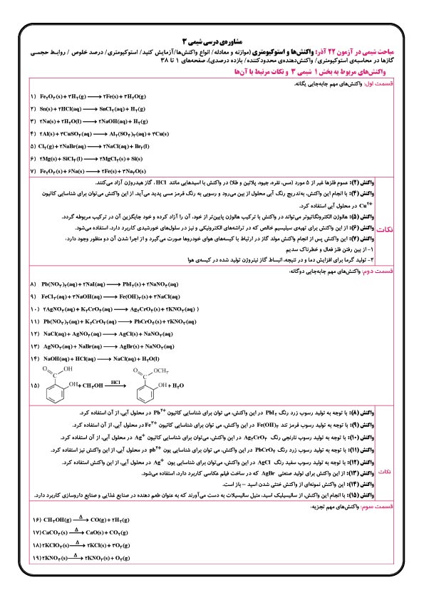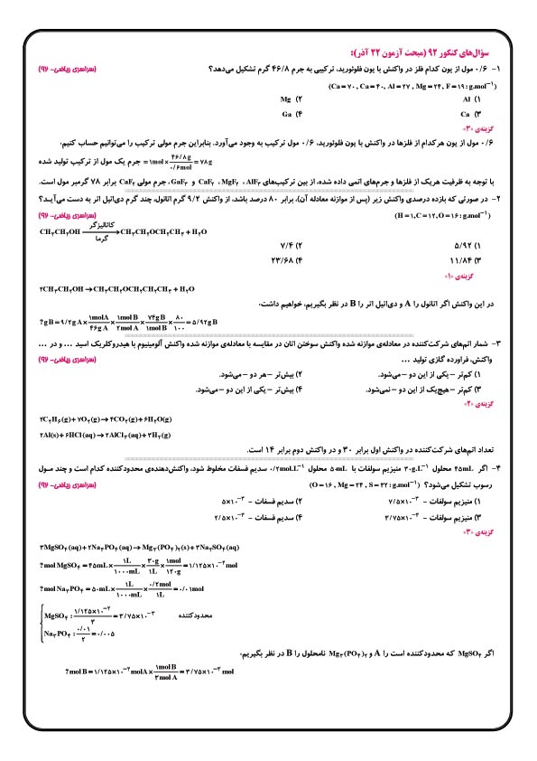 خلاصه درس شیمی 3 آزمون 22 آذر سوم ریاضی+ سوالهای مرتبطکنکور 92