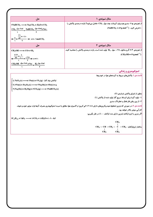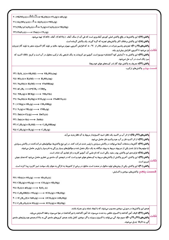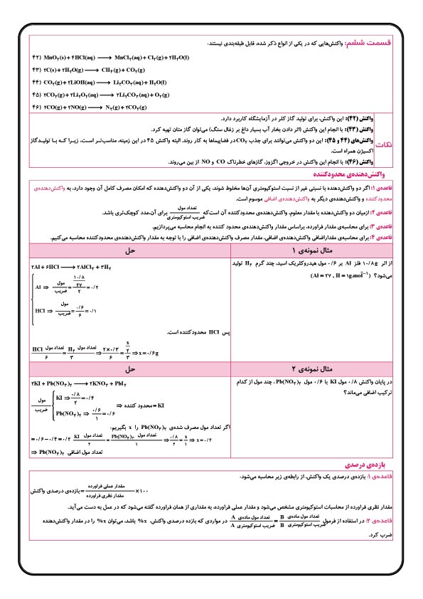 مباحث شیمی در آزمون 22 آذر: واکنشها و استوکیومتری (موازنه و معادله/ انواع واکنشها/آزمایش کنید/ استوکیومتری/ درصد خلوص / روابط حجمی گازها در محاسبهی استوکیومتری/ واکنشدهندهی محدودکننده/ باز...