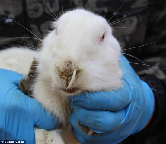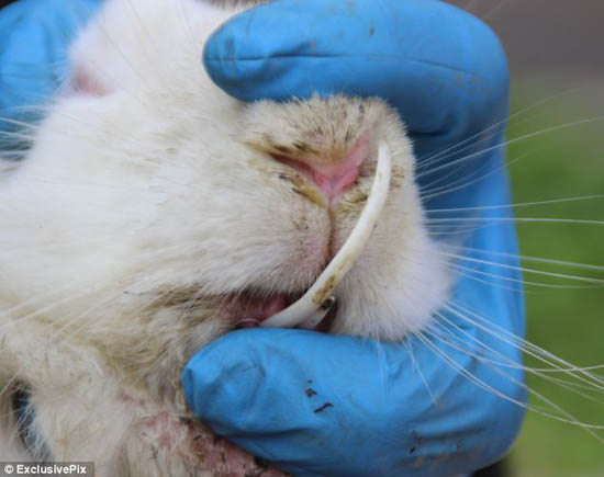 رشد بیش از حد یکی از دندانهای فک پایین خرگوش موجب بروز ناراحتیهایی مبنی بر غذا خوردن این خرگوش شد.