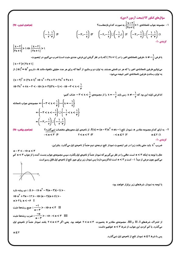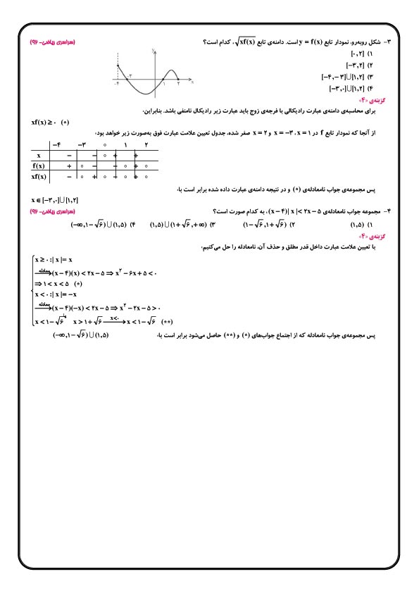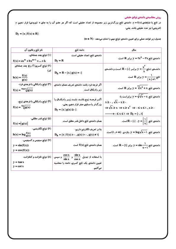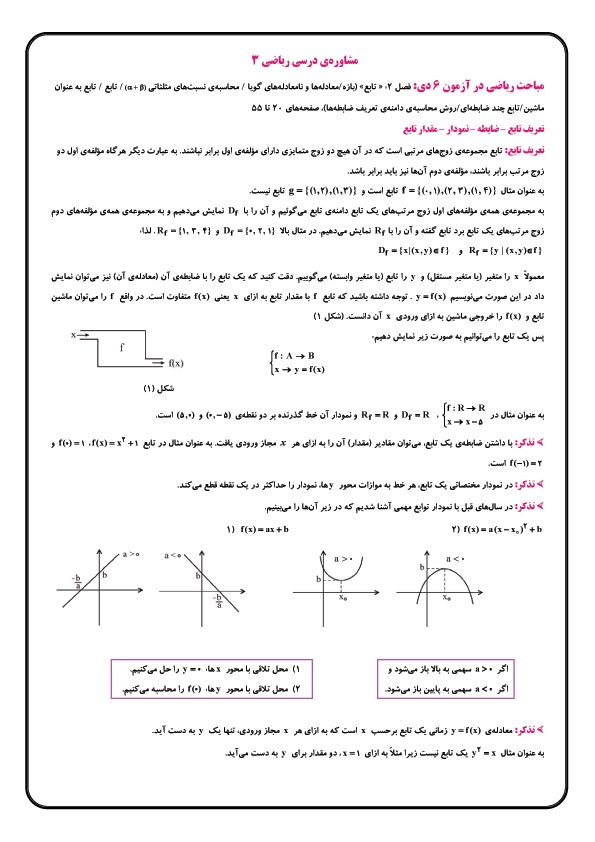 مباحث ریاضی در آزمون 6 دی: فصل 2: « تابع» (بازه/معادلهها و نامعادلههای گویا / محاسبهی نسبتهای مثلثاتی / تابع / تابع به عنوان ماشین/تابع چند ضابطهای/روش محاسبهی دامنهی تعریف ضابطهها)، صفح...