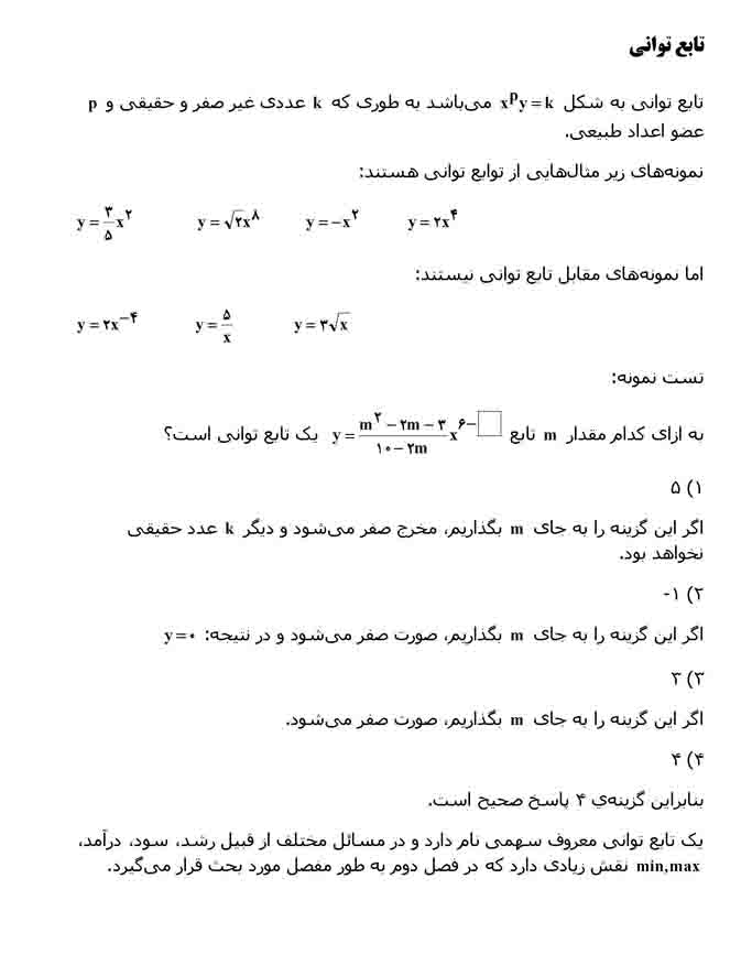 نکاتی دربارهی تابع توانی درس ریاضی ـ آزمون 6 دی سوم انسانی