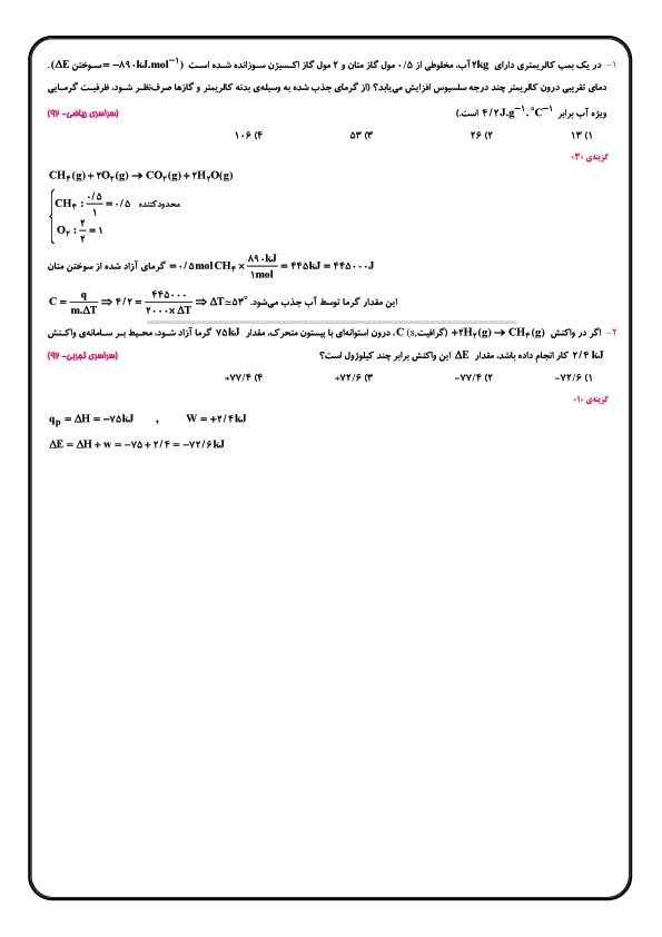خلاصه درس شیمی 3 27 دی سوم ریاضی+ سوالهای مرتبطکنکور 92