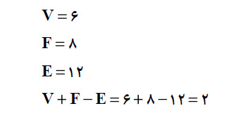 اگر تعداد سطوح را با F، تعداد اضلاع يا يالها را با E و تعداد گوشهها يا نوكها را با V نمايش دهيم، خواهيم داشت:
