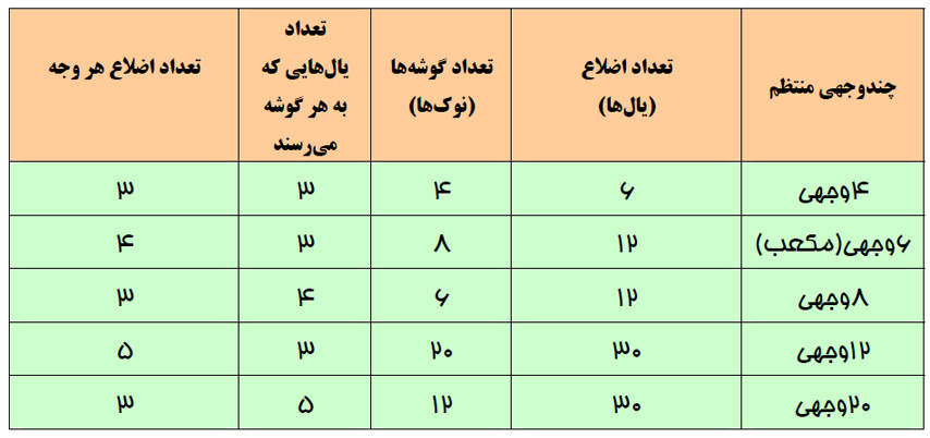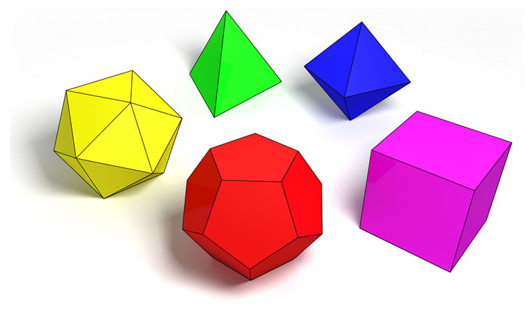 چهاروجهي منتظم ، ششوجهي منتظم (مكعب) ، هشتوجهي منتظم ،دوازدهوجهي منتظم و بيستوجهي منتظم