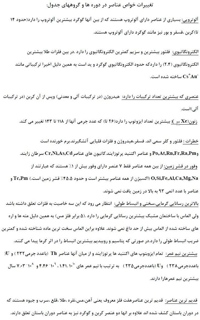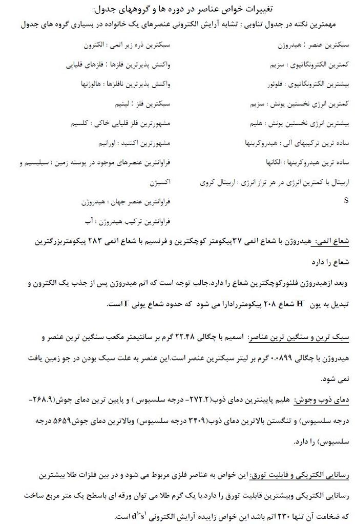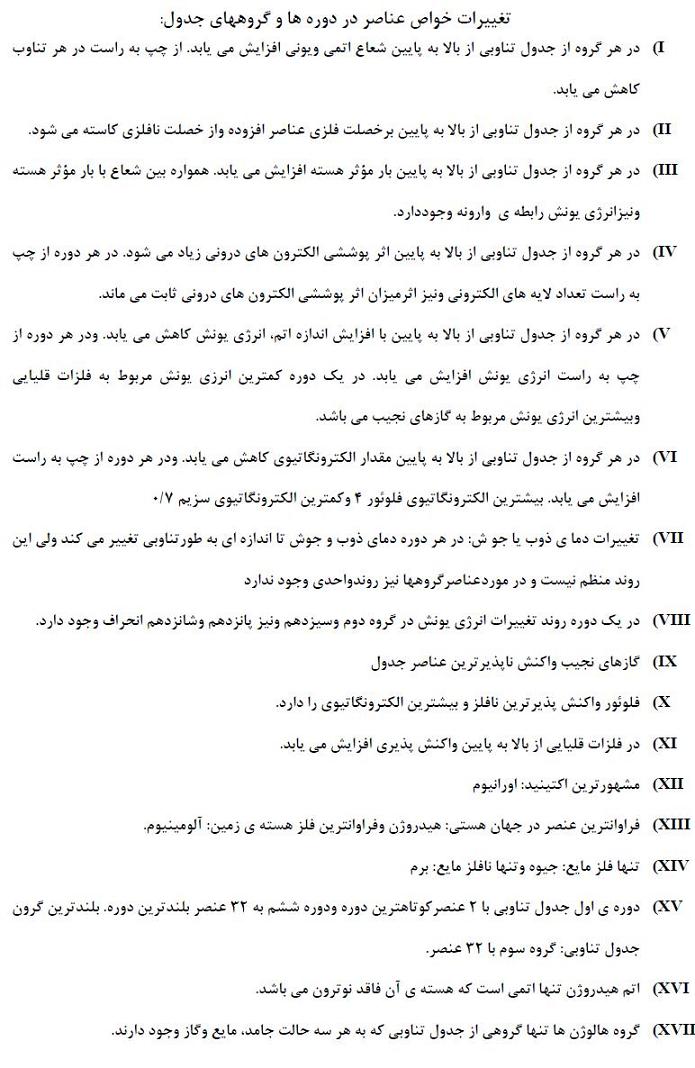 تغییرات خواص عناصر در دورهها و گروههای جدول تناوبی