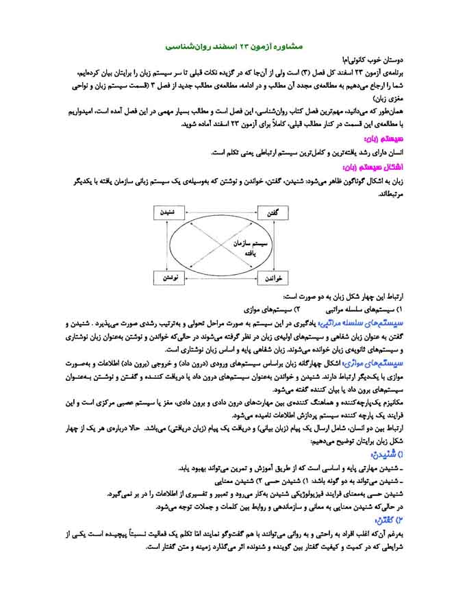 مشاوره آزمون 23 اسفند روانشناسی دوستان خوب کانونیام! برنامهی آزمون 23 اسفند کل فصل (3) است ولی از آنجا که در گزیده نکات قبلی تا سر سیستم زبان را برایتان بیان کردهایم، شما را ارجاع میدهیم...