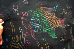 وقتی که خشک شد،با وسیلهی نوک تیزمان روی مقوا طرح دلخواهمان را خراش میدهیم.