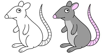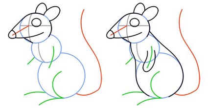 با کمي دقت مي توانيد به خوبي از پس کشيدن آن بر بياييد. دايره هايي که براي بدن موش کشيديد کمک مي کند که اين پيچ و تاب ها را به راحتي بکشيد.