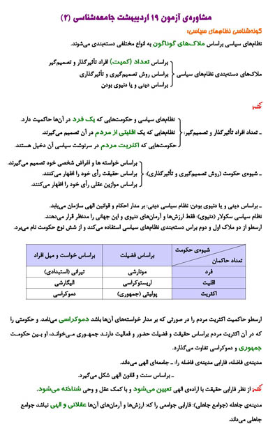 مشاورهی آزمون 19 اردیبهشت جامعهشناسی (2) گونهشناسی نظامهای سیاسی: نظامهای سیاسی براساس ملاکهای گوناگون به انواع مختلفی دستهبندی میشوند.