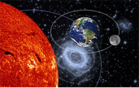 Earth is bigger than the Moon. Earth’s gravity pulls on the Moon. That is why the Moon orbits, or goes around, Earth. The SUN is bigger than Earth. Its gravity makes Earth go around the Sun. On a larger scale, gravity arranges cosmic bodies into orbits and even causes drifting space particles to pull together slowly into larger and larger clumps that eventually become planets, stars and galaxies.