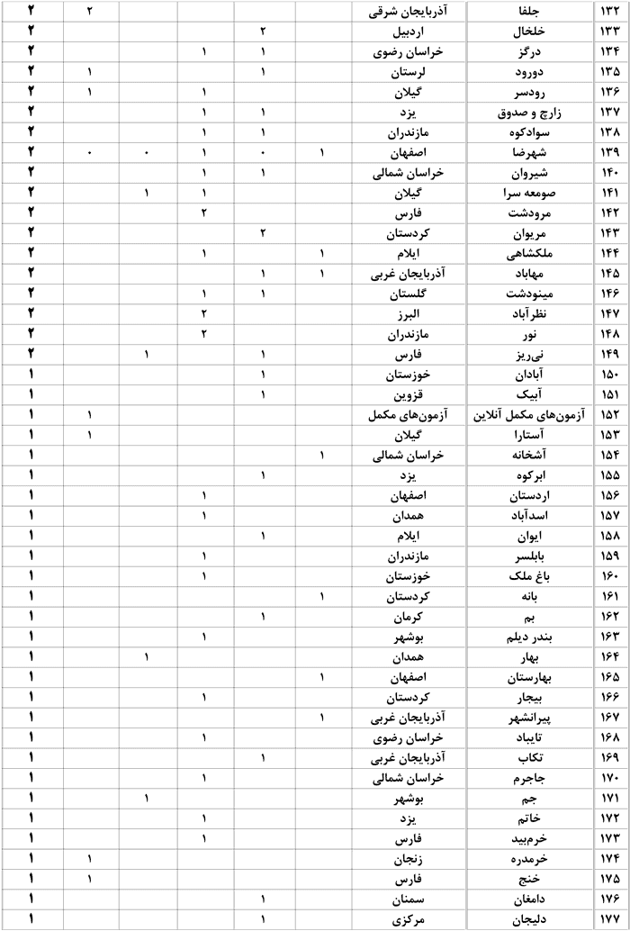 قبولی های کنکور شهر شما