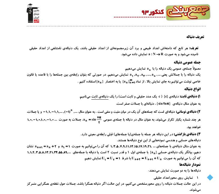 جمع بندی نکات دیفرانسیل مبحث دنباله + یک مجموعه سوال و پاسخ