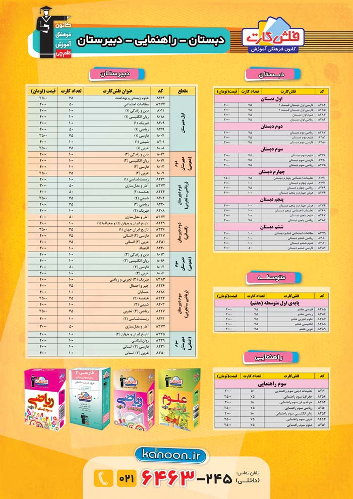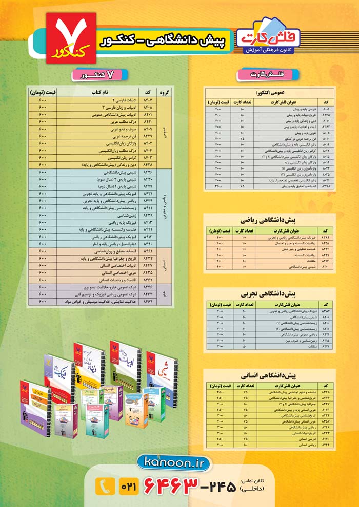 6- ما (كانون) براي تمامی مقاطع (ابتدايي تا كنكور) و براي تمامی درسها فلشكارت تهيه كردهايم.