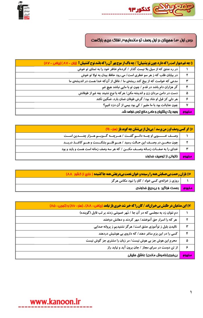 جمع بندی کنکور 93