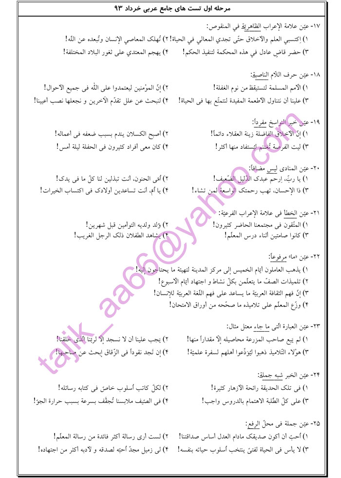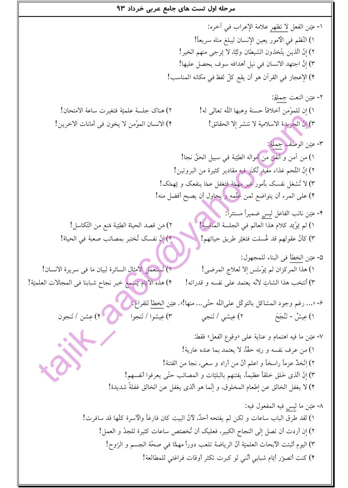 ابوالفضل تاجیک:جمع بندی عربی با تست های منتخب(قسمت اول)