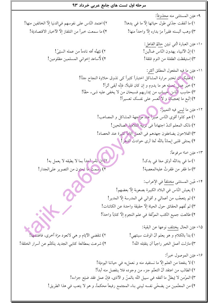 جمع بندی عربی با تست های تاجیک