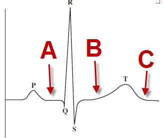 1) در نقطه C نسبت به نقطه A خون بیشتری در دهلیز ها وجود دارد .