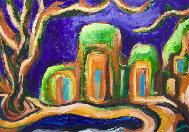 نقاشی صومعه جنگل سبک پست امپرسیونیسم