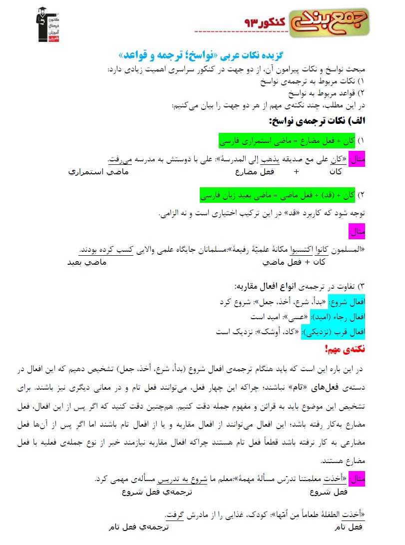 گزيده نكات عربي «نواسخ؛ ترجمه و قواعد»