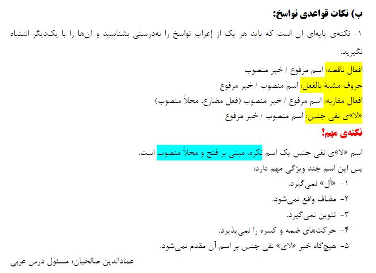 گزیده نکات عربی «نواسخ؛ ترجمه و قواعد»