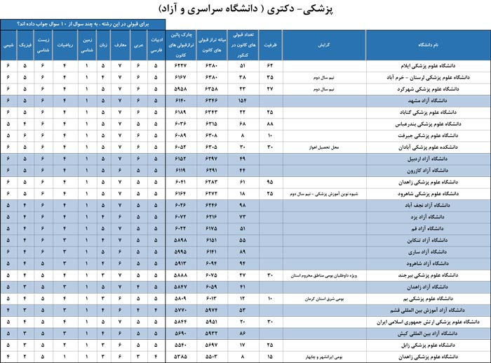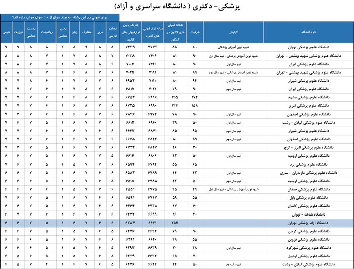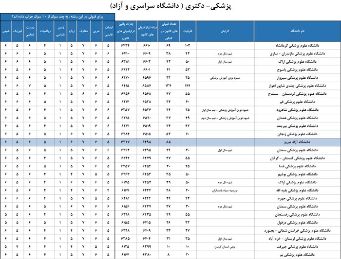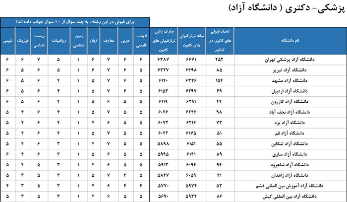 در جدول زیر قبولی های پزشکی دانشگاه آزاد را به تنهایی مشاهده می کنید...