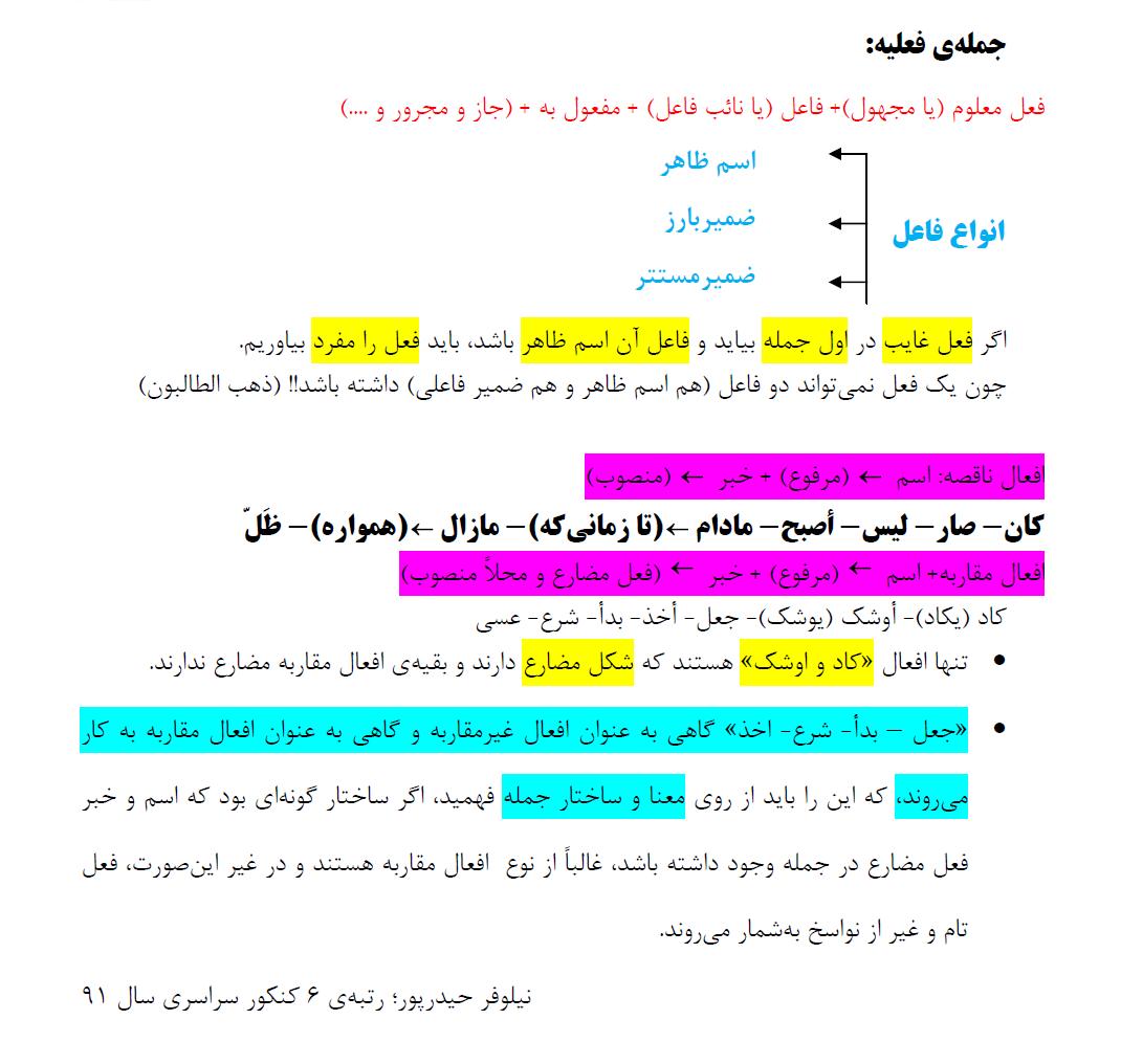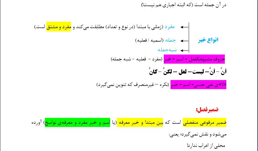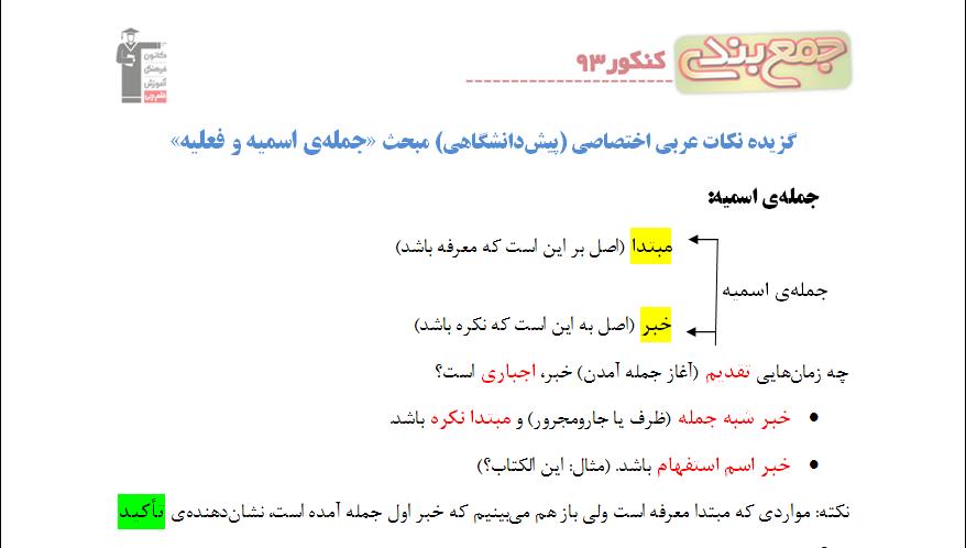 گزيده نكات عربي اختصاصي (پيشدانشگاهي) مبحث «جملهي اسميه و فعليه»