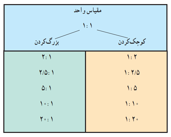 نسبت اندازهی ترسیمی يك شكل به اندازهی حقیقی آن را مقیاس میگویند.