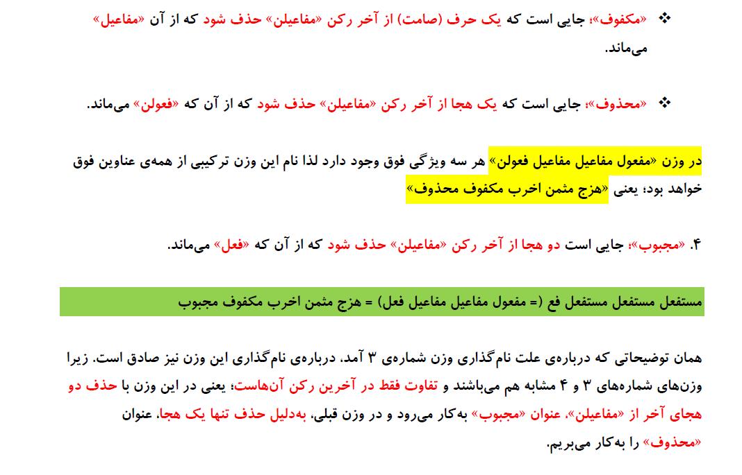نام اوزان عروضی به روشی ساده (بخش سوم)