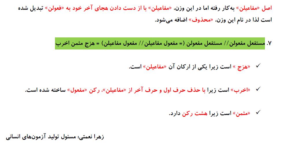 بهخاطرسپاري نام اوزان عروضي به روشي ساده (بخش سوم)