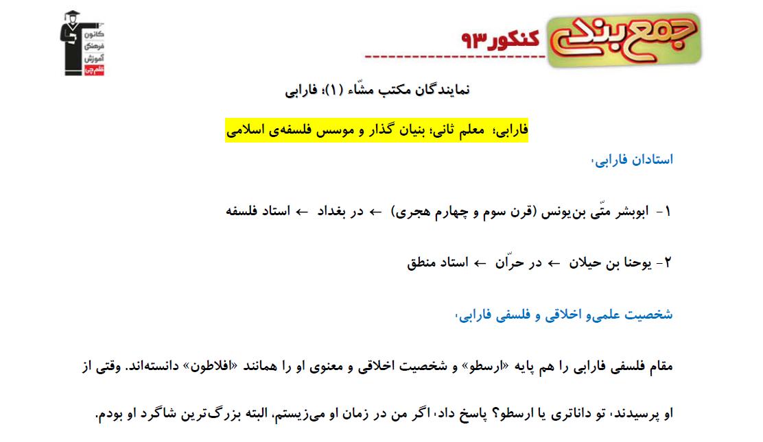 نمایندگان مکتب مشّاء (1)؛ فارابی فارابی؛ معلم ثانی؛ بنیان گذار و موسس فلسفهی اسلامی