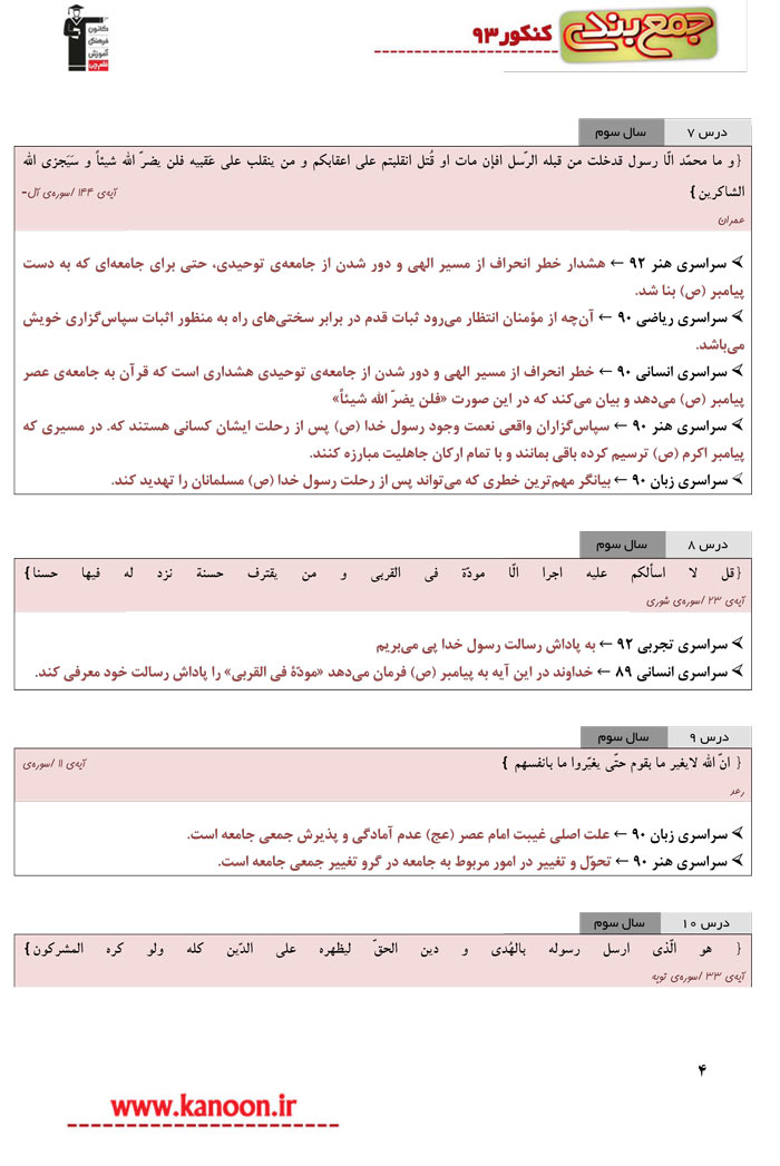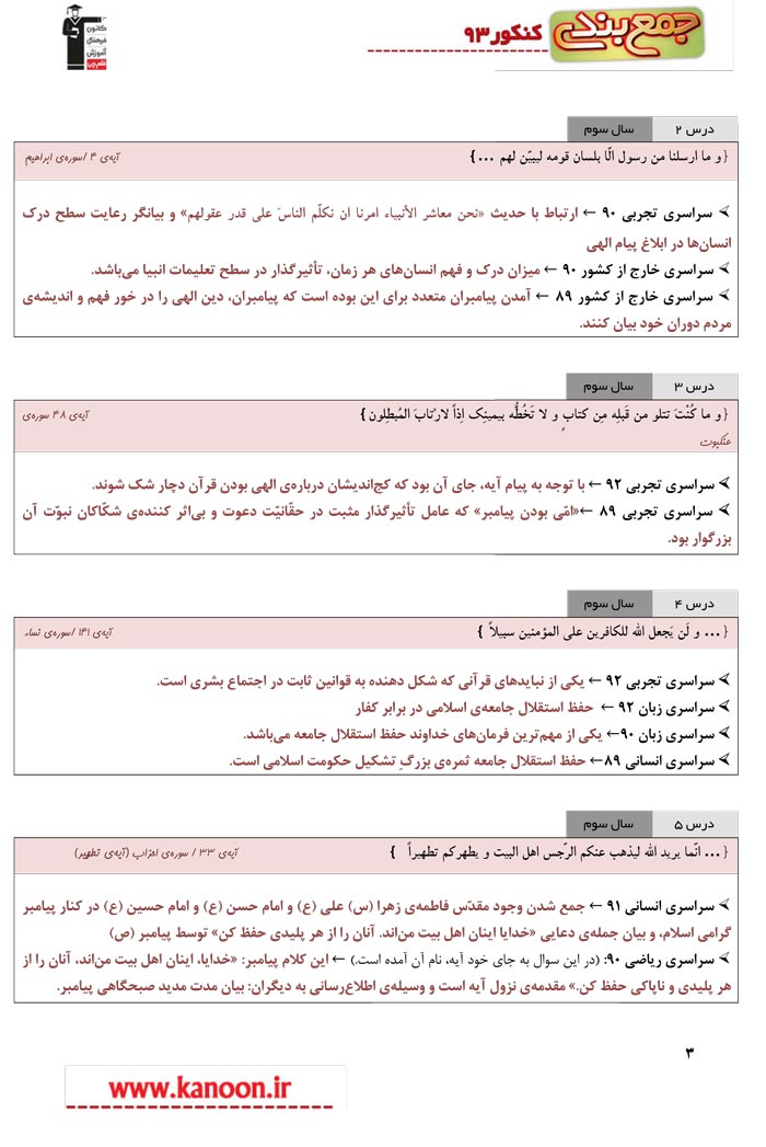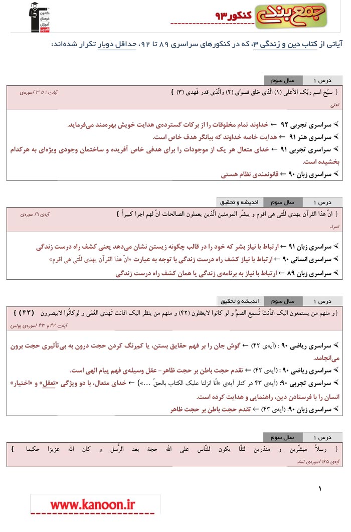 آیات پرتکرار دین و زندگی3 در کنکور سراسری