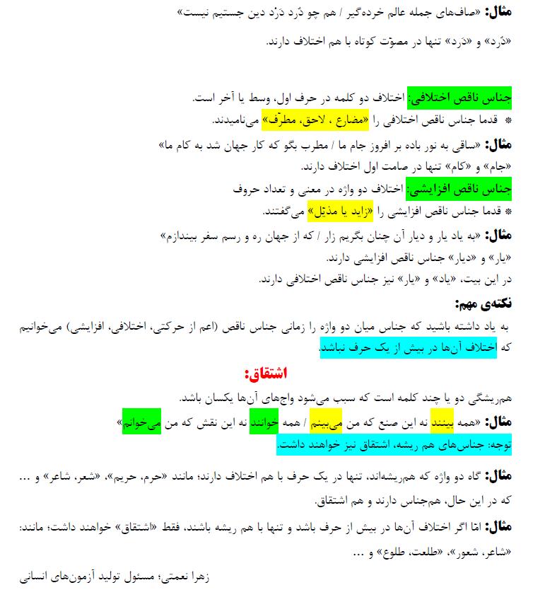 گزيده نكات آرايههاي ادبي «آرايههاي لفظي»