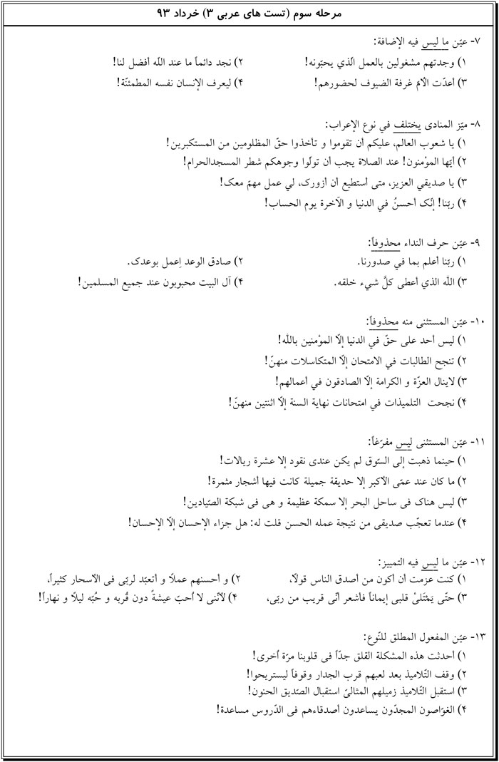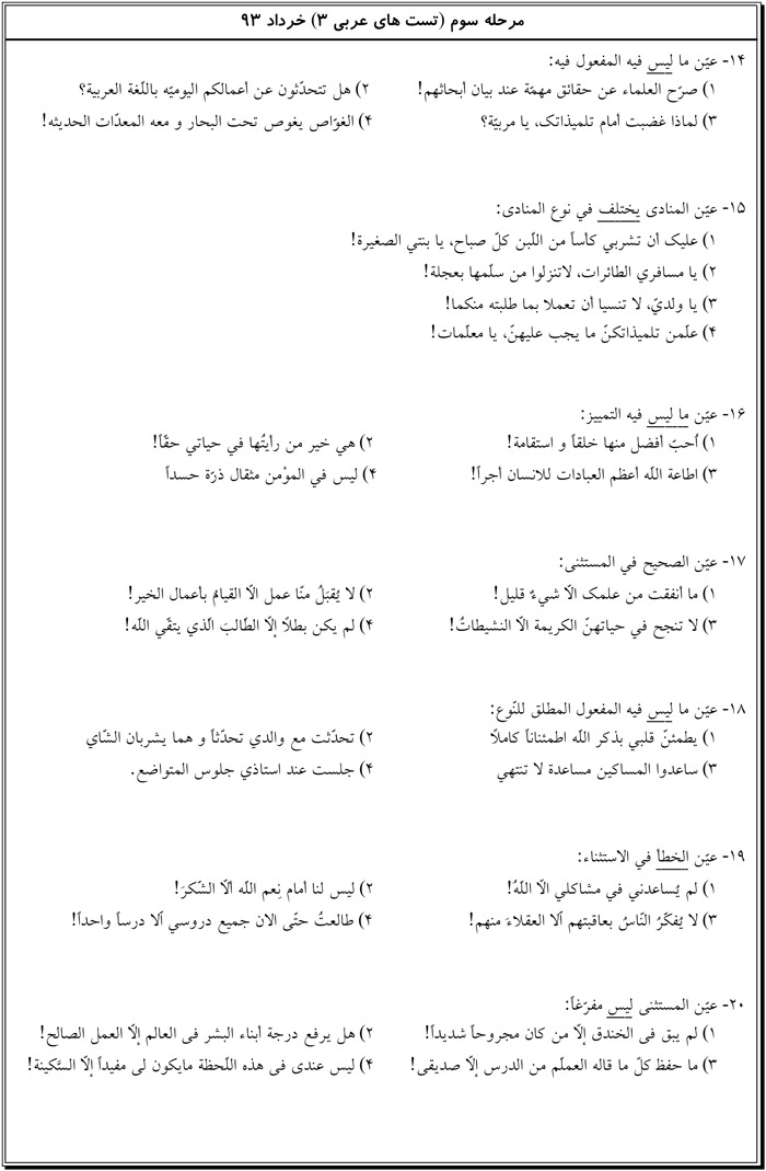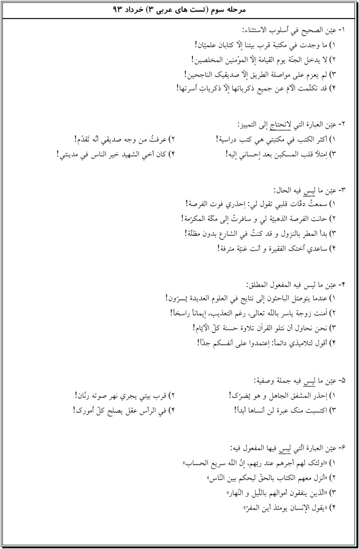 ابوالفضل تاجیک:جمع بندی عربی با تست های منتخب(قسمت سوم)