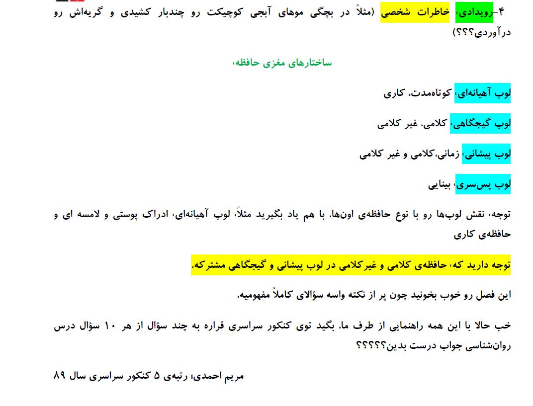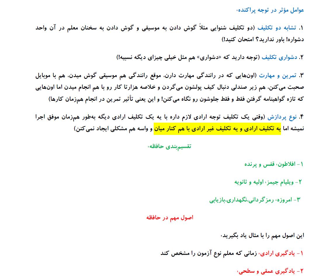 گزيده نكات روانشناسي (فرايندهاي شناختي)