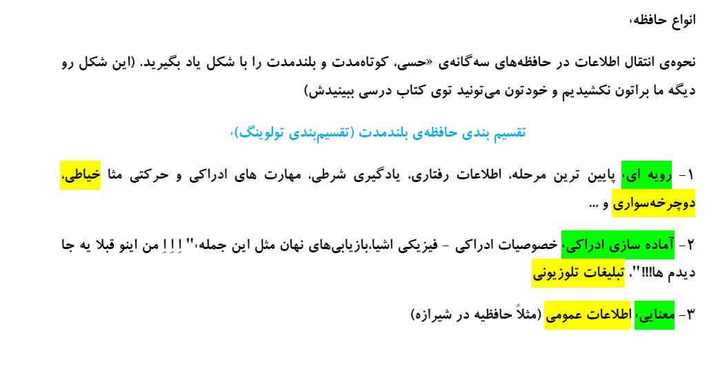 گزیده نکات روانشناسی (فرایندهای شناختی)