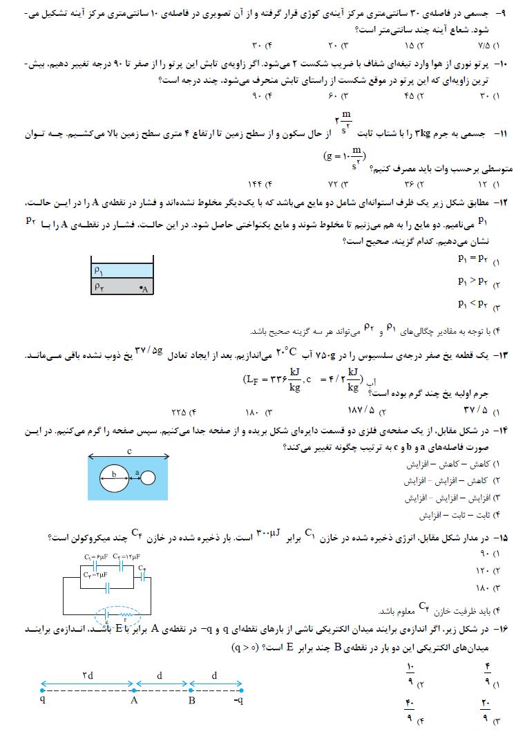 آزمون جامع فیزیک/سؤال+پاسخ تشریحی