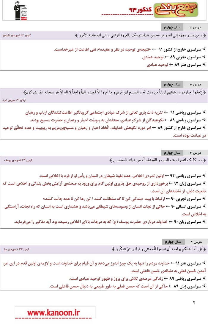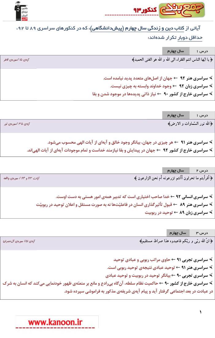 آیات پرتکرار دین و زندگی پیش در کنکور سراسری
