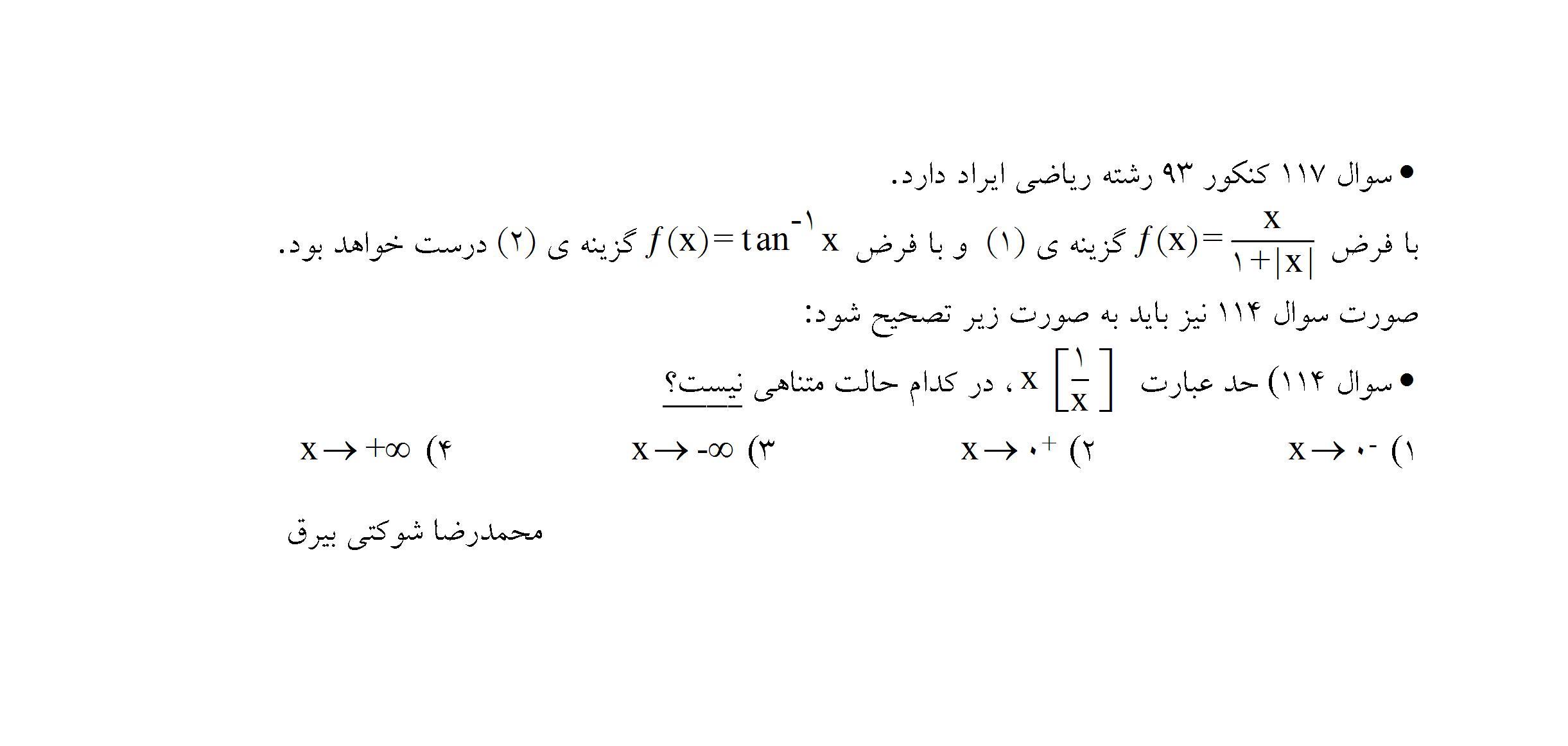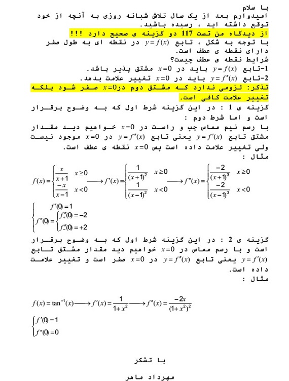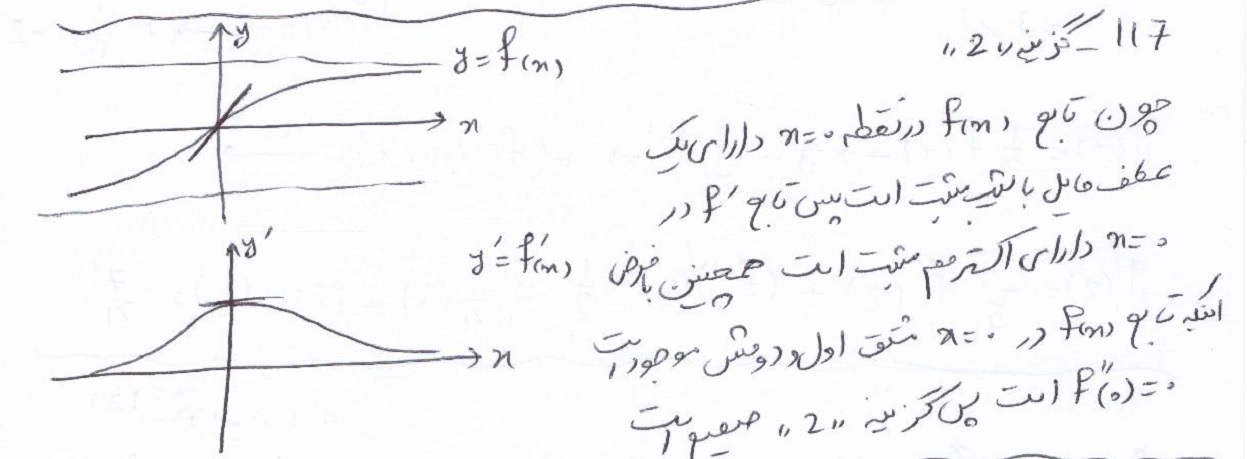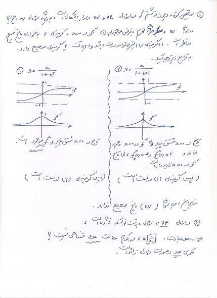 در زیر پاسخ آقای حمید علیزاده را مشاهده کنید که البته با یک فرض سوال را حل کردند در ادامه نیز نظر آقای فرهاد حامی در مورد سوال 117 و همینطور سوال 114 آورده شده است در زیر نظر آقای محمد رضا شوکتی را نیز می بینید