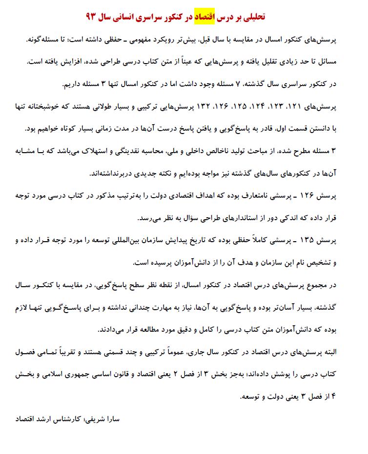سارا شریفی : تحلیل درس اقتصاد در کنکور انسانی 93