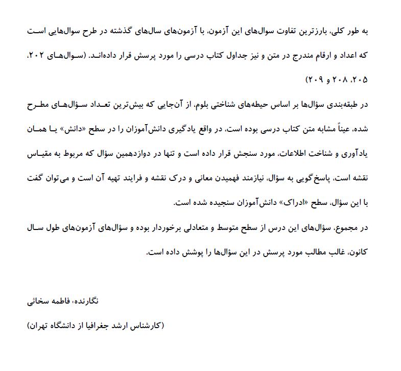 فاطمه سخایی: تحلیل درس جغرافیا در کنکور انسانی 93